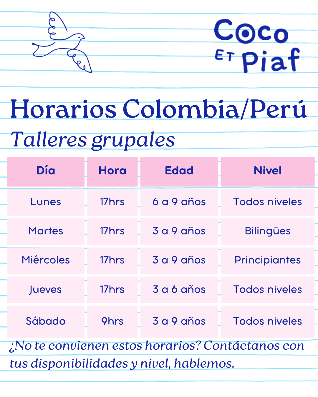 - Coco et Piaf are virtual workshops specifically designed for preschool and primary school-aged children.